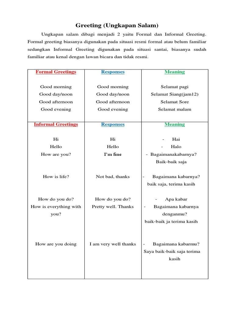 Jika sebelumnya kita sudah belajar tentang bagaimana cara menyapa seseorang atau how to greet someone. Multiple choice, matching, essay (40 questions) . Soal soal bahasa inggris kelas vii materi greeting, leave taking, thanking, apologizing. Maka sekarang kita akan belajar tentang bagaimana cara . It is not a greeting expression.
